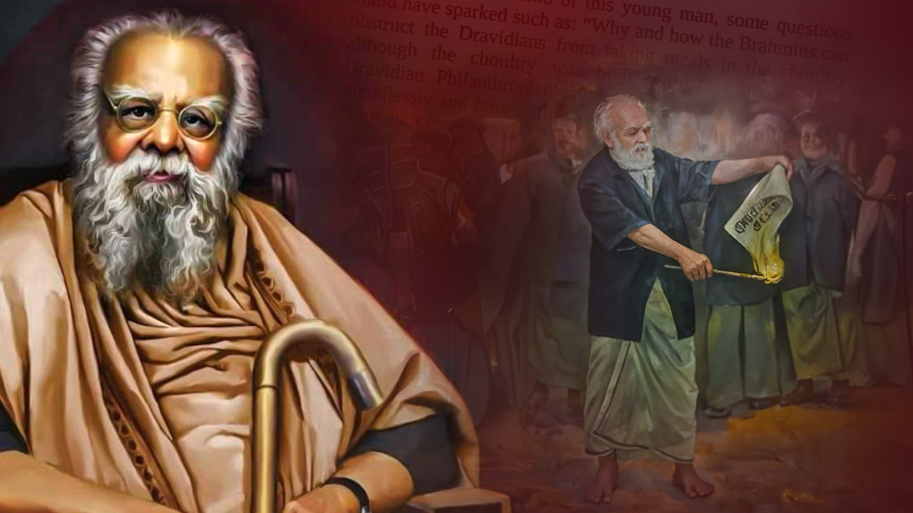 The Dravidian Movement, led by E.V. Ramasamy, popularly known as Periyar, is often celebrated as a force for social reform in South India. However, a closer look at his actions and ideologies reveals a troubling legacy that threatens the unity of India and insults Sanatan Dharma. Slogans like “Hum Chaiye Azaadi, Manuvaad se Azaadi, Brahmanvaad se Azaadi”—rooted in extreme leftist ideologies—emerged from this movement, promoting division and hatred. This article aims to expose the true nature of Periyar’s legacy and urges South Indian Hindus to scrutinize his actions through a critical lens.